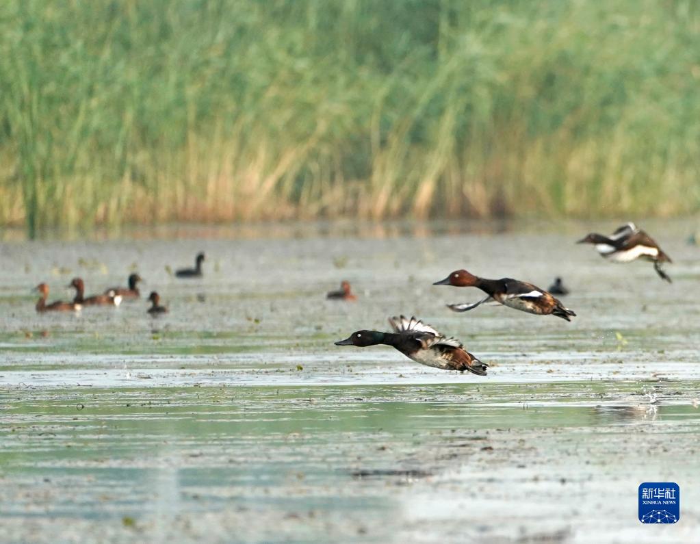 夏日的白洋淀,碧波蕩漾,荷紅葦綠。遼闊的水面上,一群活潑可愛(ài)的青頭潛鴨幼鳥跟隨“父母”在蘆葦叢中穿梭。這意味著,世界極度瀕危物種青頭潛鴨將白洋淀作為了繁殖地。